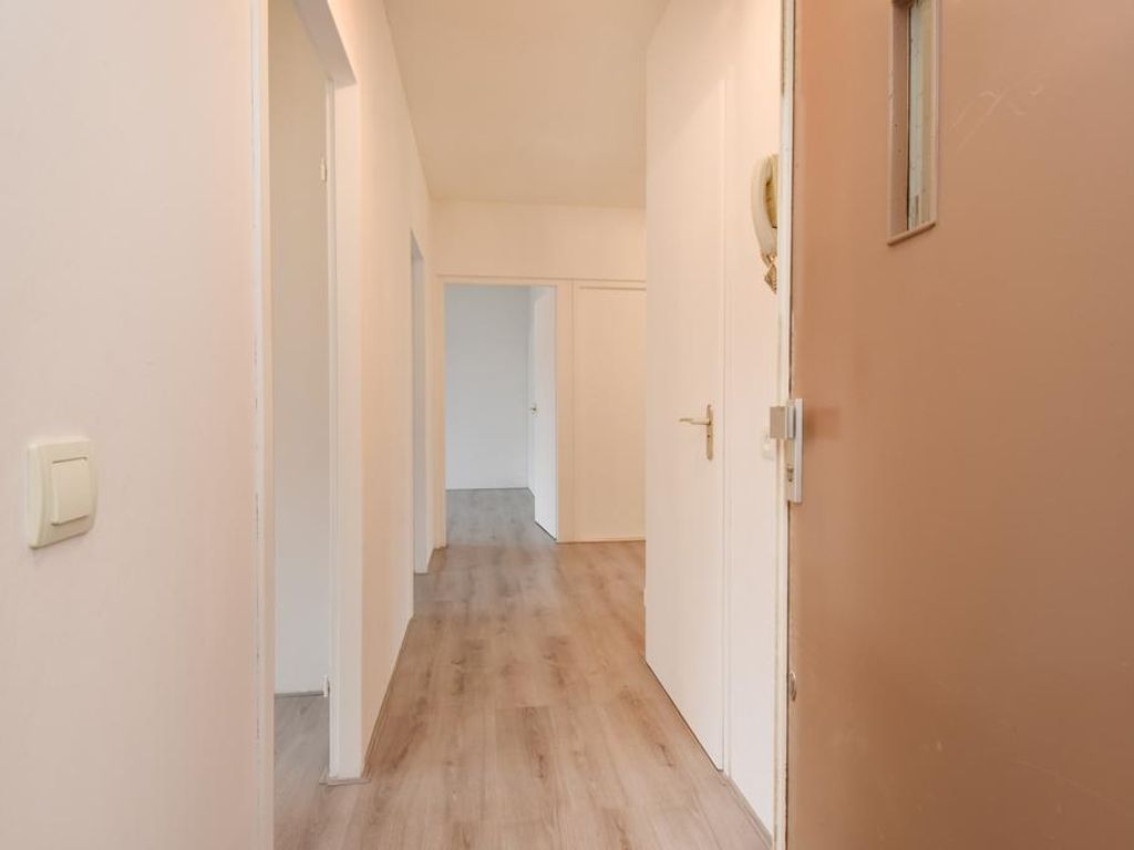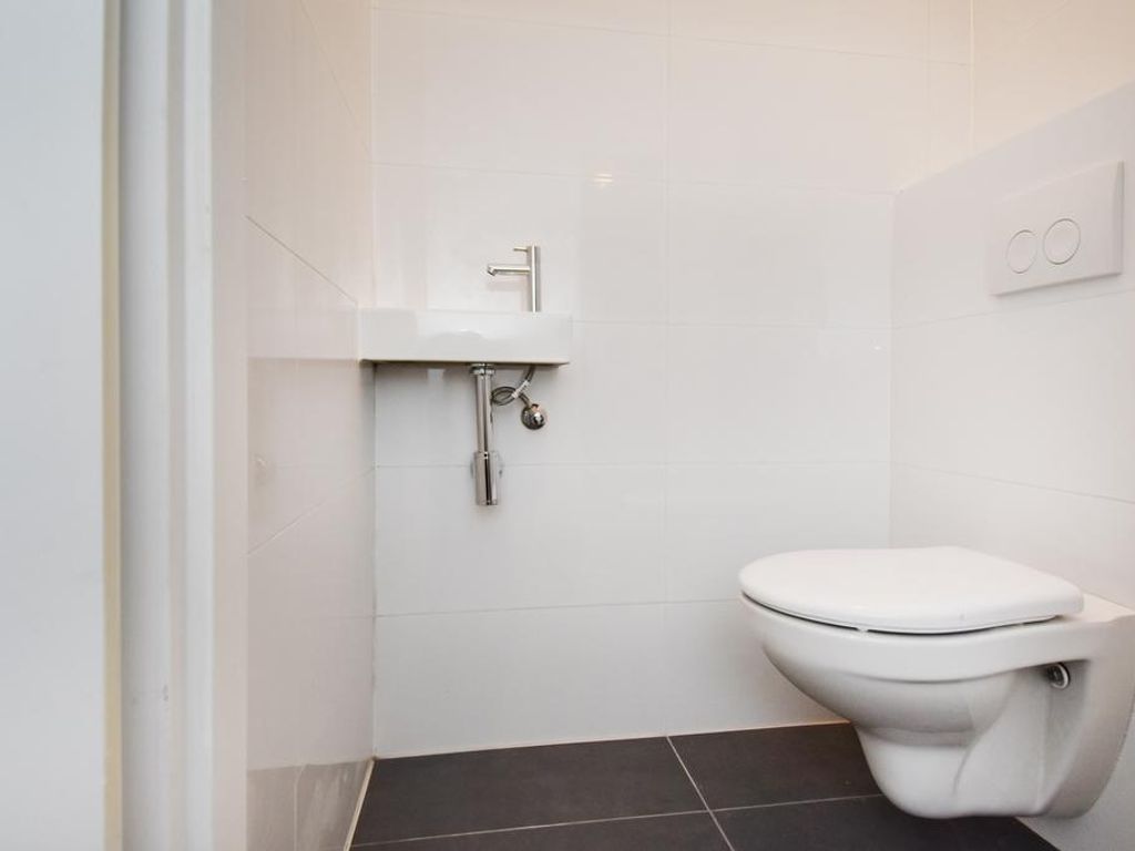 Entree woning, L-vormige hal met modern toilet, meterkast en toegang tot alle vertrekken.