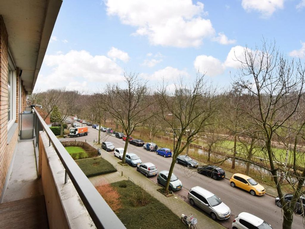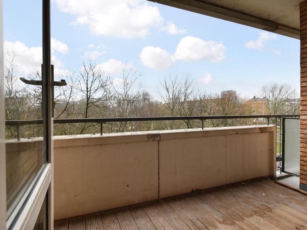 Zonnig terras (ca. 3.02 x 1.71m) aan de voorzijde met uitzicht over het park.
