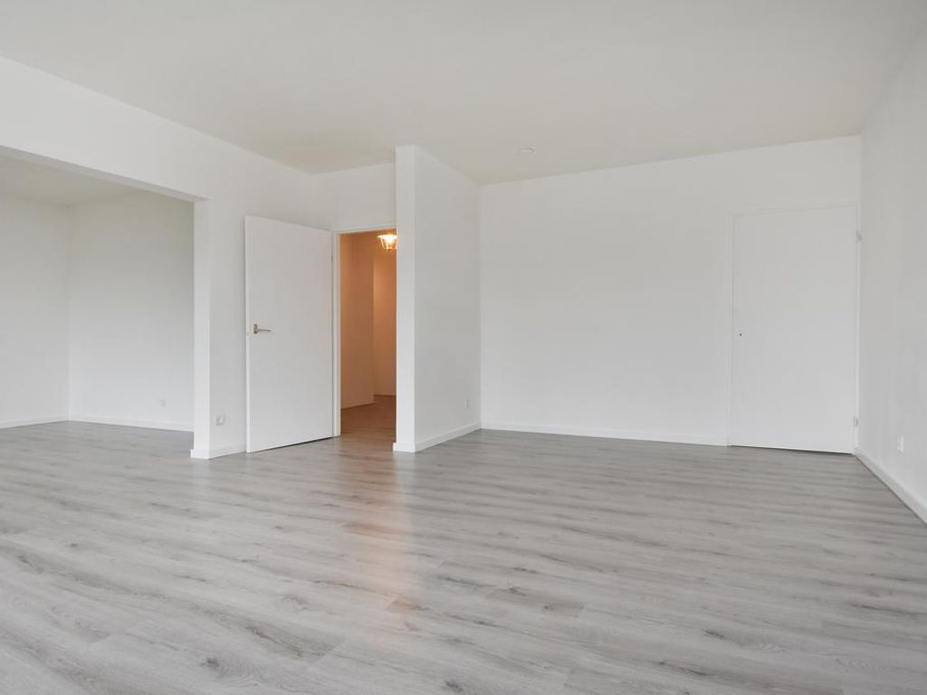 Grote wooneetkamer (ca. 8.34 x 6.11/3.90m) met bijgetrokken voorzijkamer, veel raampartijen en deur naar het balkon.
