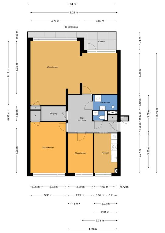 Een 3e slaapkamer kan worden gerealiseerd door het terugplaatsen van een wand in de doorgebroken wooneetkamer.