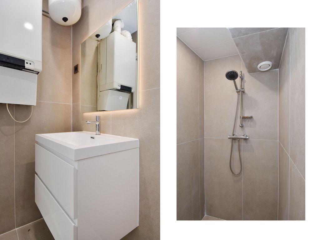 Moderne luxe badkamer (ca. 1.92 x 1.11m) met douche en wastafelmeubel.