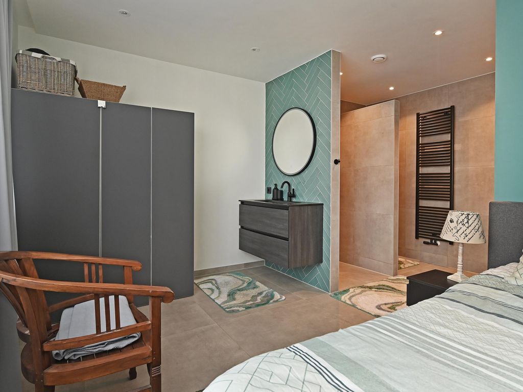 Fraaie luxe badkamer ensuite (ca. 2.51 x 2.02m) met inloopdouche, wastafelmeubel en toilet.