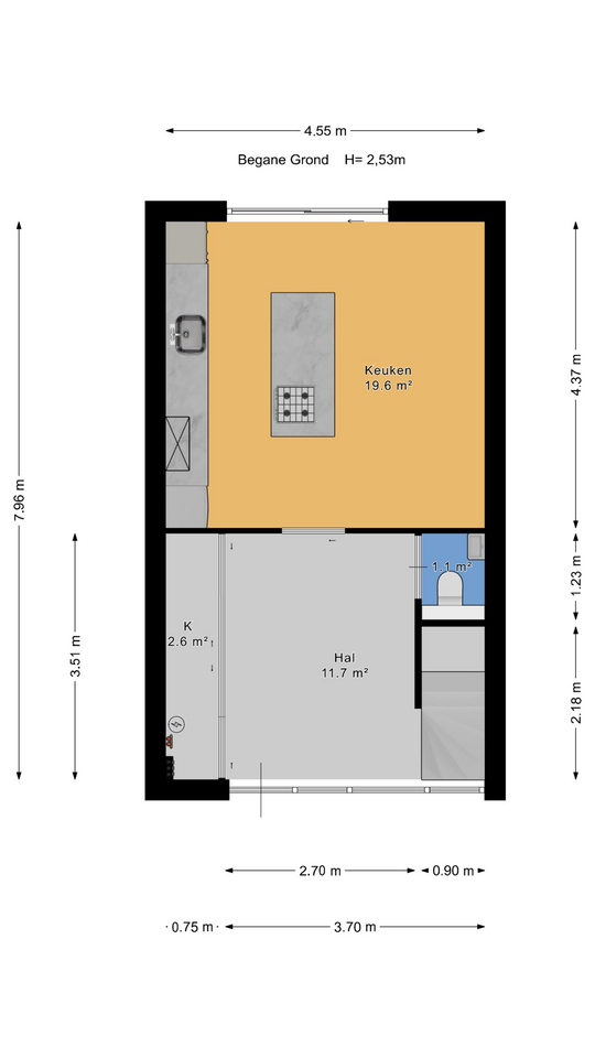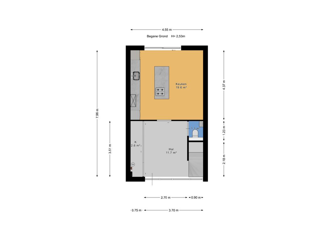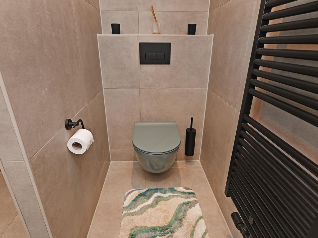 Entree, grote hal (ca. 3.51 x 2.70m) met modern toilet, meterkast en toegang tot de ruime woonkeuken.
