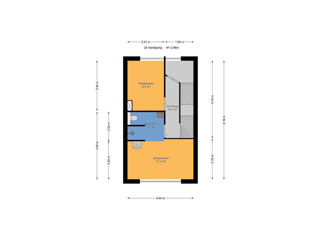2e ruime slaapkamer aan de achterzijde (ca. 3.45 x 2.51m).