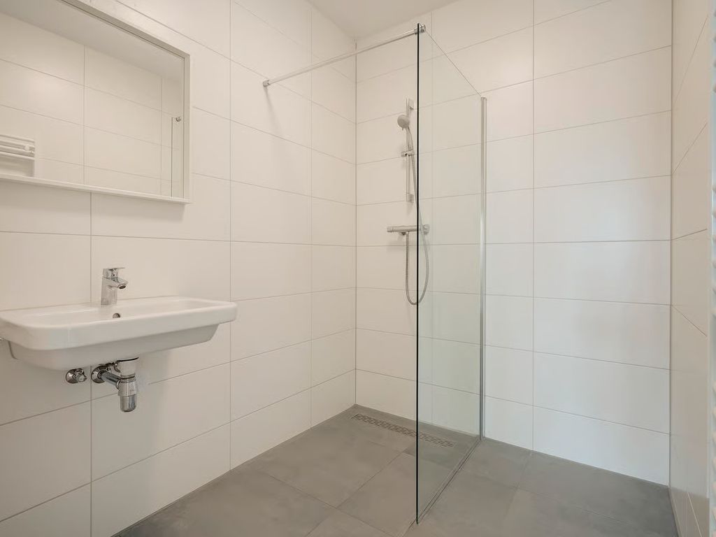 2e badkamer (ca. 2.18 x 1.81m) met inloopdouche en wastafel.