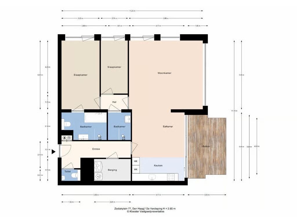 Tussenhal met toegang tot beide slaapkamers en badkamers.